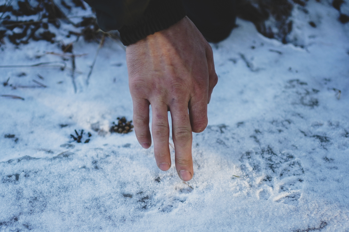 «Видишь, какой след, мягонько прошёлся», — начинает старший, показывая из окна машины вперёд, на заснеженный пригорок. «Волк, навстречу нам двигался, вон туда идёт», — заканчивает младший. Оба кивают.