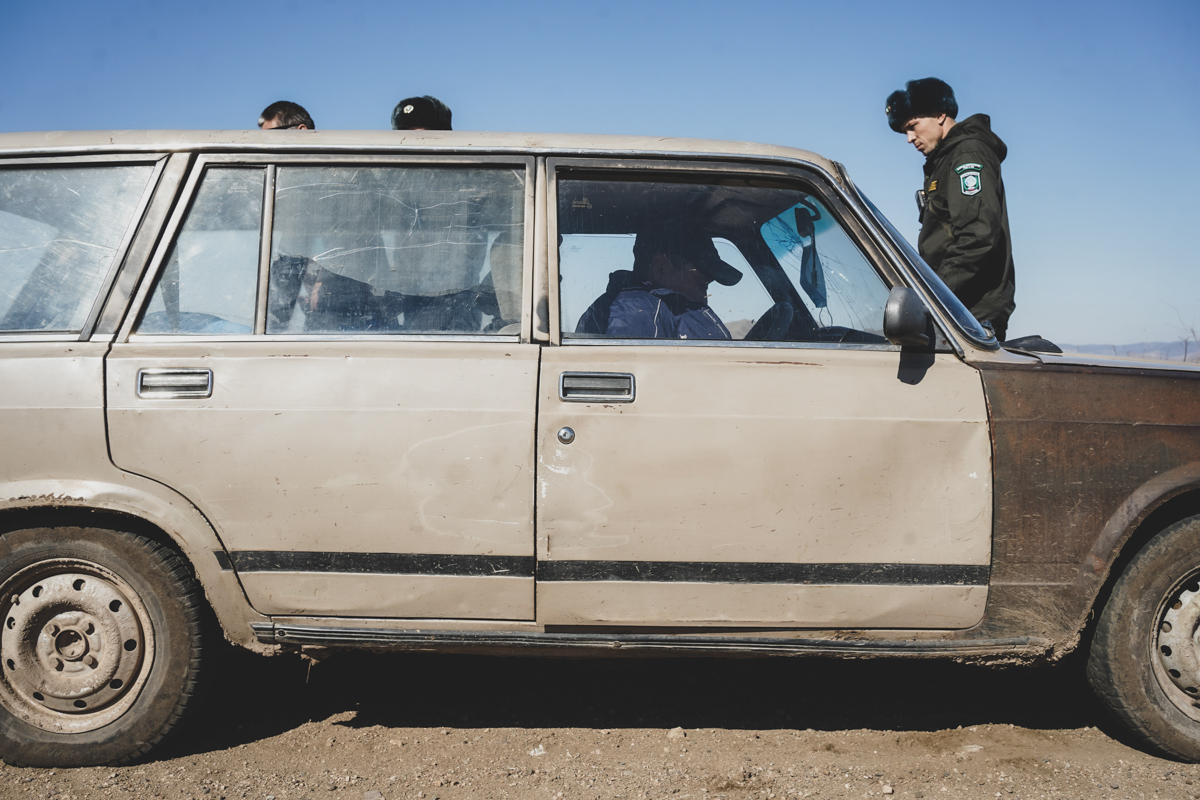 «Машину досмотрим вашу, — это уже старший Красиков. — Багажник открываем». Мужчина приподнял расхлябанный багажник, подпёр деревянной палкой. Весь салон в синих строительных мешках, в них — куски ржавого металла. «Нету-нету ничего. Только ё… ый (проклятый — ЛБ) чёрный металл, — начал оправдываться бурят. — Надо жить как-то». В этот раз охота не состоялась. В машине у местных не оказалось ничего запрещённого, поэтому «Жигули» отпустили.