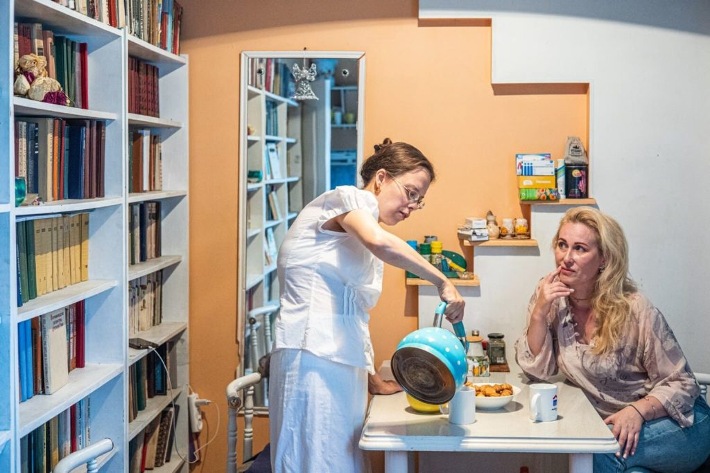 Остапчук отставляет кружку с чаем. Взмахивает рукой. «Не хочется, чтобы нас воспринимали как шизиков. Знаете, почему так говорят? Потому что интеллект Надежды Юрьевны — выше среднего уровня. Такие люди выделяются в толпе и воспринимаются как фрики», — громко рассуждает Светлана. «А-а-а, Низовкина читает книги, — говорит она, подражая невидимому обывателю. — Это же что-то необычное, да-да-да».
