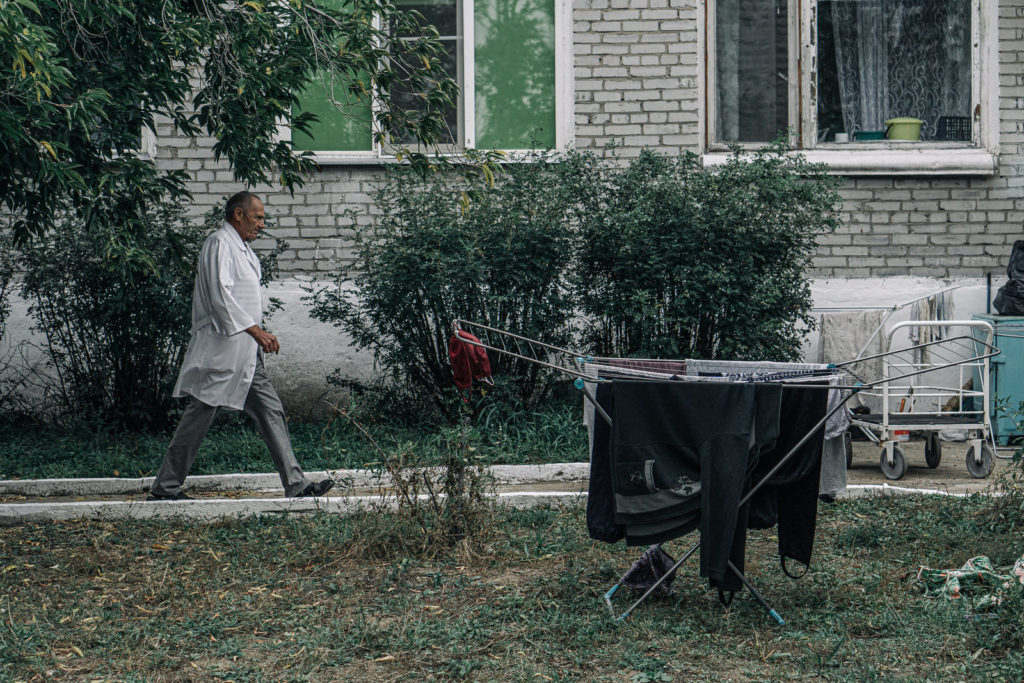 Петрова стоит у подъезда дома вместе с соседями — тремя пожилыми женщинами и мужчиной. Эта пятиэтажка находится на заросшем полынью пригорке, оттуда весь диспансер — как на ладони. «Не знаю, что им там не нравится, — рассуждает Раиса, проработавшая в психиатрической больнице девять лет. — Кормят на убой четыре раза в день, ничего они там не делают: балдеют, телевизор смотрят — и ещë недовольны. И лечут их там. Если кто заболел, на МРТ свозют. Нас возьми, нормальных людей, никто никого не отвезут. А их возют. Им даже зубки вставляют».