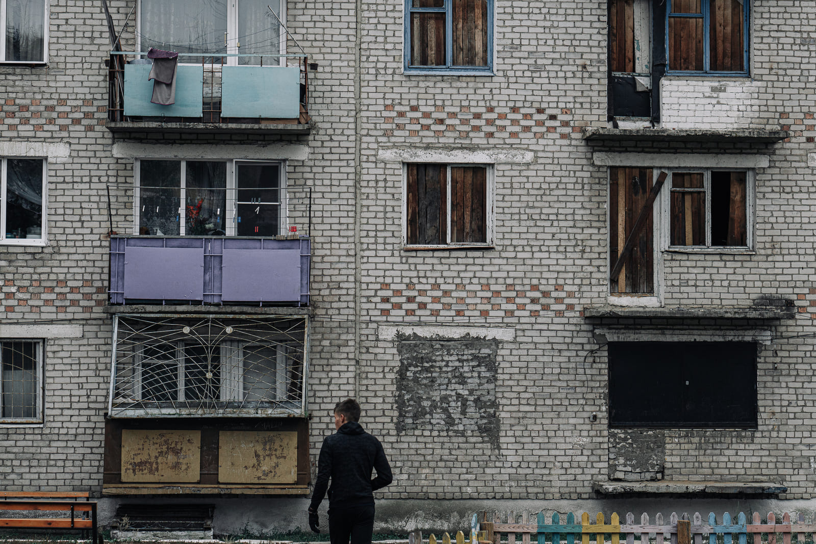 Полностью пустых пятиэтажек в посёлке — семь. Ещё часть домов жива наполовину: в нескольких подъездах квартиры целы, а в нескольких — нет.