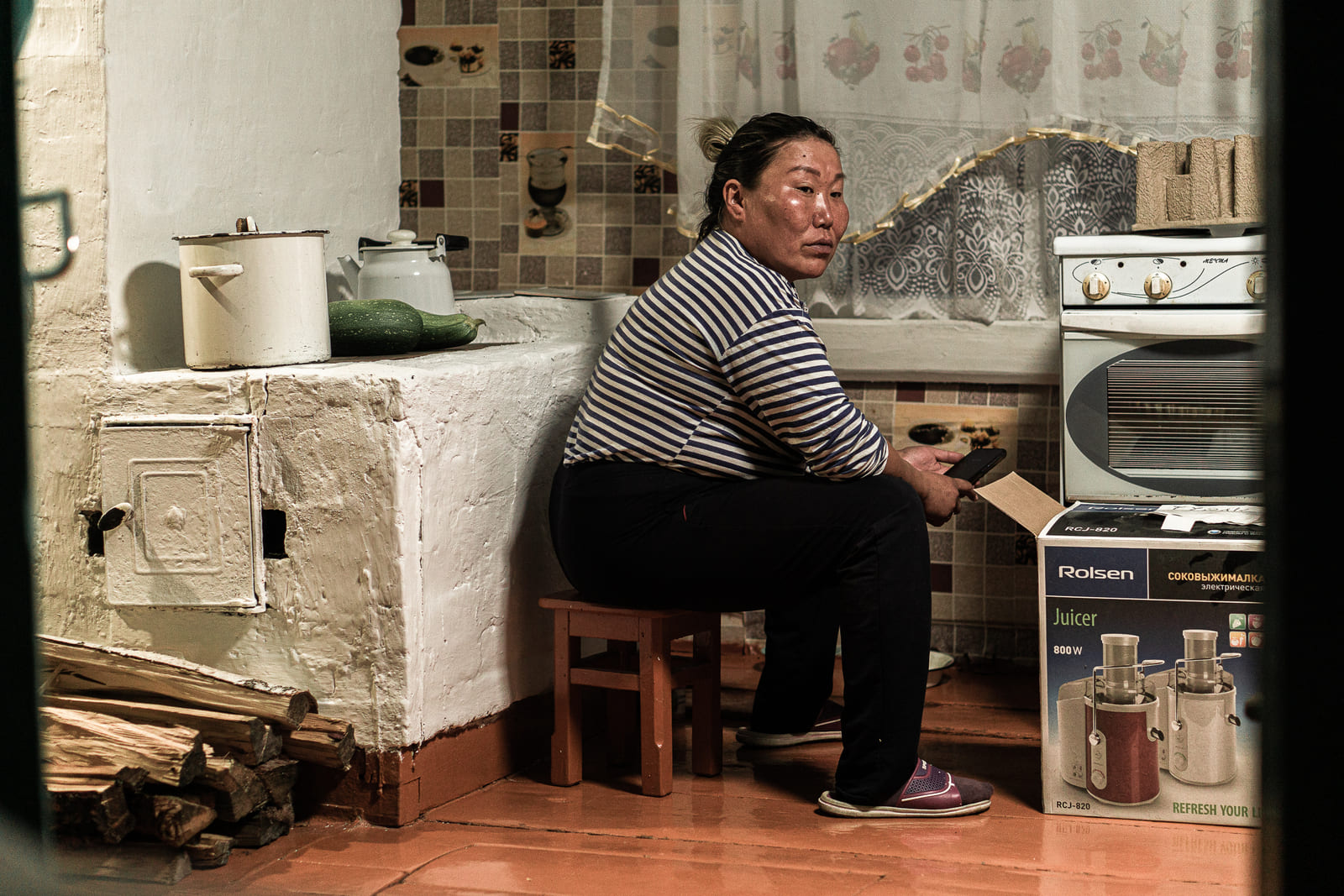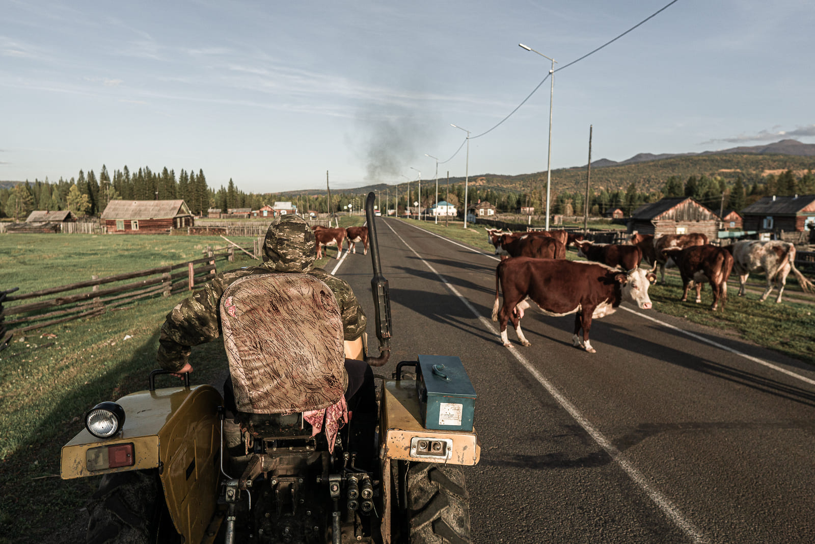 «Меня тут, знаешь, как называют? Бой-баба!» — кричит Долгор Ангархаева. Она — за рулём китайского мини-трактора «Дунфэнг». Трактор пересекает местную речку Далбайка, его трясёт от булыжников, которые лежат на дне речки. Долгор едет за дикой облепихой, на том берегу ягоды много. Пока Ангархаева собирает облепиху совком (2 ведра за 20 минут), она безостановочно курит. «Не потому, что хочу, а потому, что тут медведь бродит, — объясняет Долгор. — Он запах чухает и не подходит. Да нормально всё, не бойся».