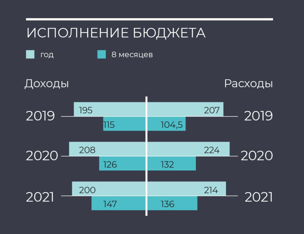 Но нельзя сказать, что всё безоблачно. Есть несколько настораживающих тенденций. У нас в 2019 году доходы были 195 миллиардов, в 2020-м — 208 миллиардов рублей. На дворе 2021 год, а доходы — 200 миллиардов, это на 5 миллиардов больше, чем в 2019-м, и на 8 миллиардов меньше, чем в 2020 году. Хотя расходные обязательства увеличились в ковидный период. Это во-первых.