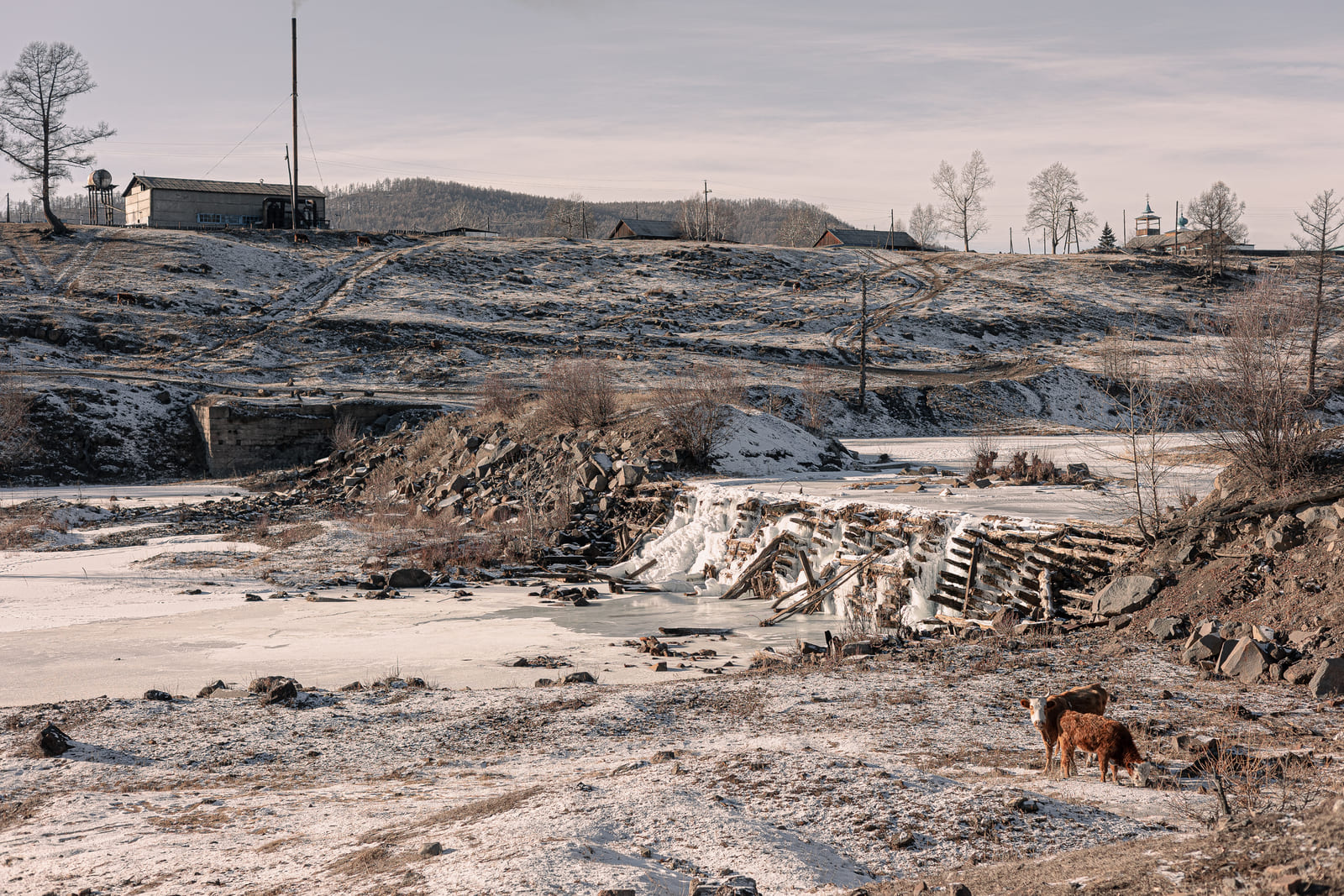 Чтобы добраться из деревни до села, нужно пройти мимо развалин старой электростанции, спуститься к Мыле, а потом подняться по каменистому обрыву. Обычный человек преодолевает этот путь за 15-20 минут. Тумэн с тростью идёт около получаса.