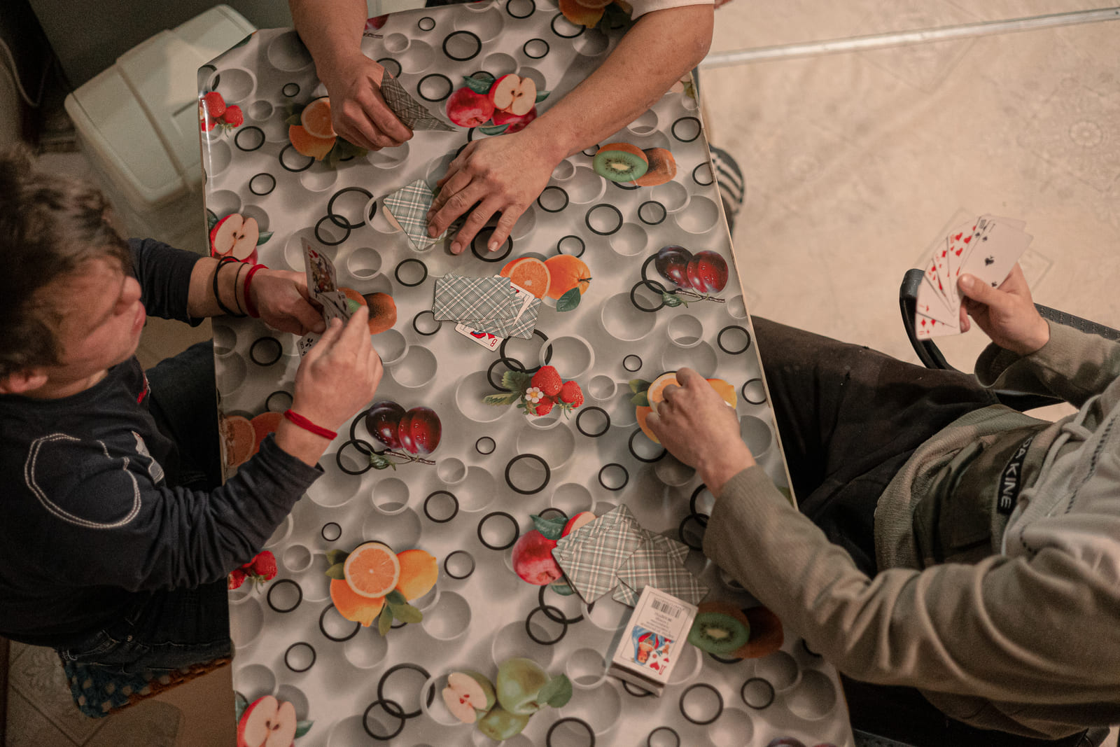 Играть в дурака ребята научились в интернате. Про интернат они вспоминают часто, но возвращаться туда не хотят. «Главное, тут не бьют. Я вытащил счастливый лотерейный билет!» — говорит Тумэн. «И свобода есть, — добавляет Дима, тасуя колоду. — Хочешь — гречку на ужин вари. Хочешь — суп с лапшой».