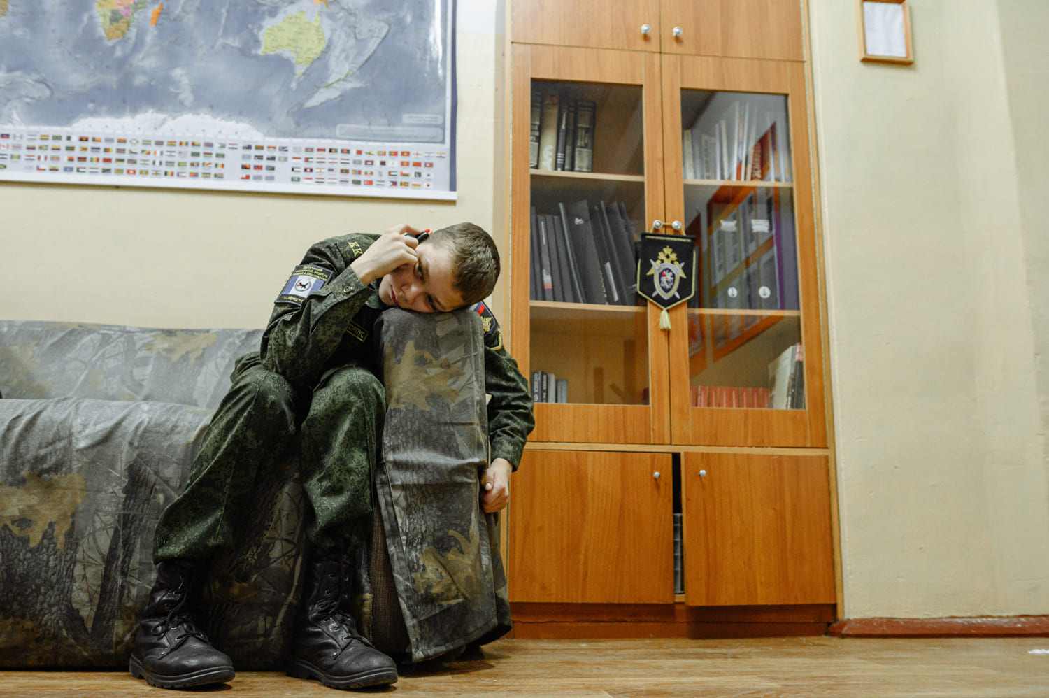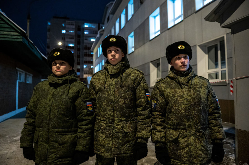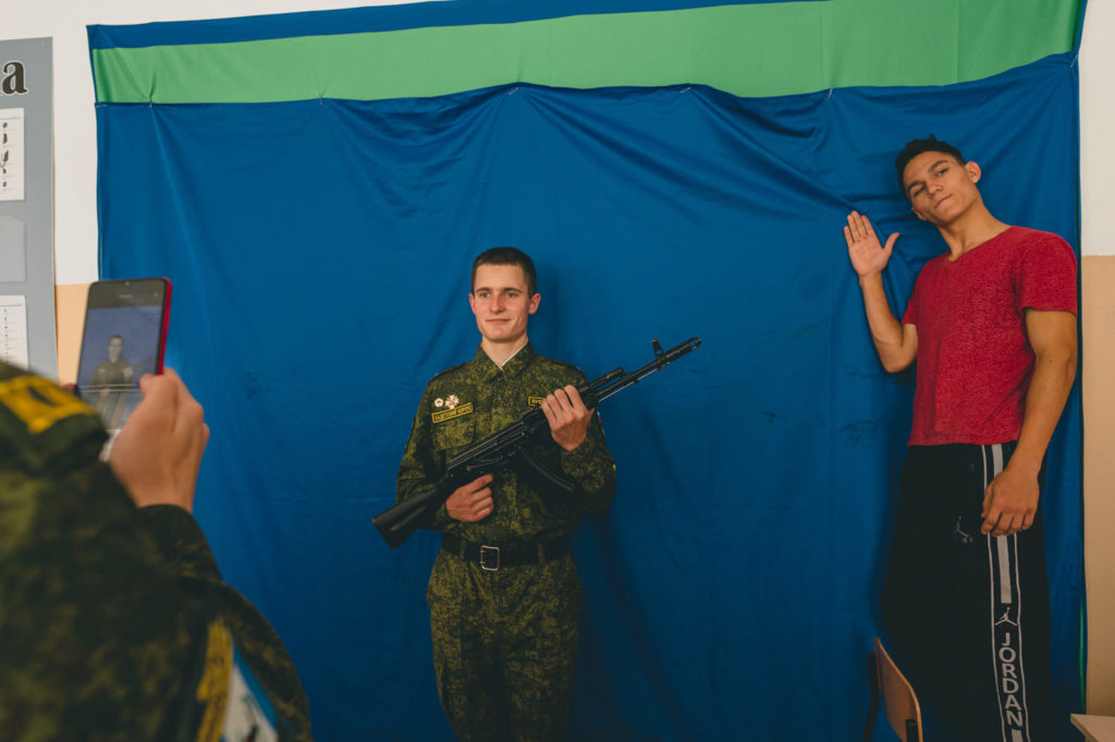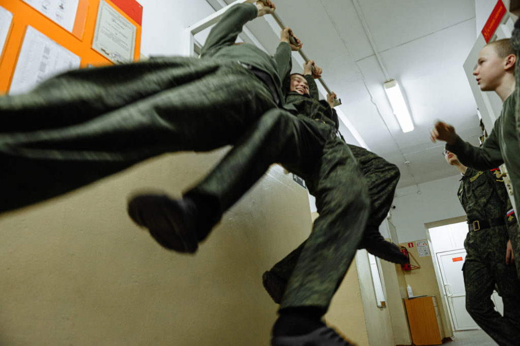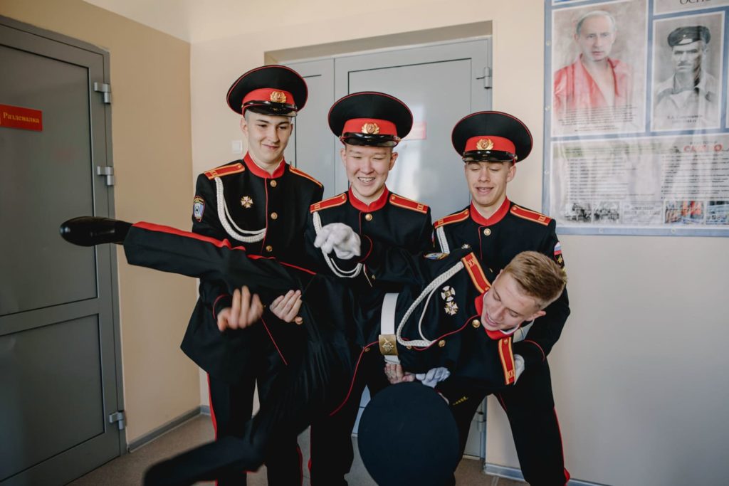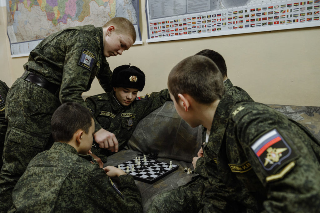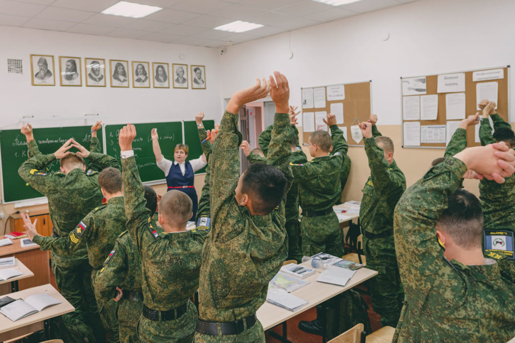 Политинформация проводилась в корпусе всегда: каждые вторник и четверг офицеры-воспитатели проводили информационный час до начала уроков. В последний месяц программа по патриотическому воспитанию кадет усилилась. Так рекомендовали в Министерстве образования. «Сейчас мы эту работу усиливаем, ввели специальные классы и часы. Делаем разъяснительные работы на уроках истории и обществознания — для всего корпуса и по классам, — рассказывает заместитель директора кадетского корпуса по воспитательной работе Гордеева. — Мы разъясняем, что Россия не агрессор. Что сейчас сложилась необходимая политическая обстановка, что мы на правильном пути и боремся с фашизмом». Других источников информации у кадет нет.