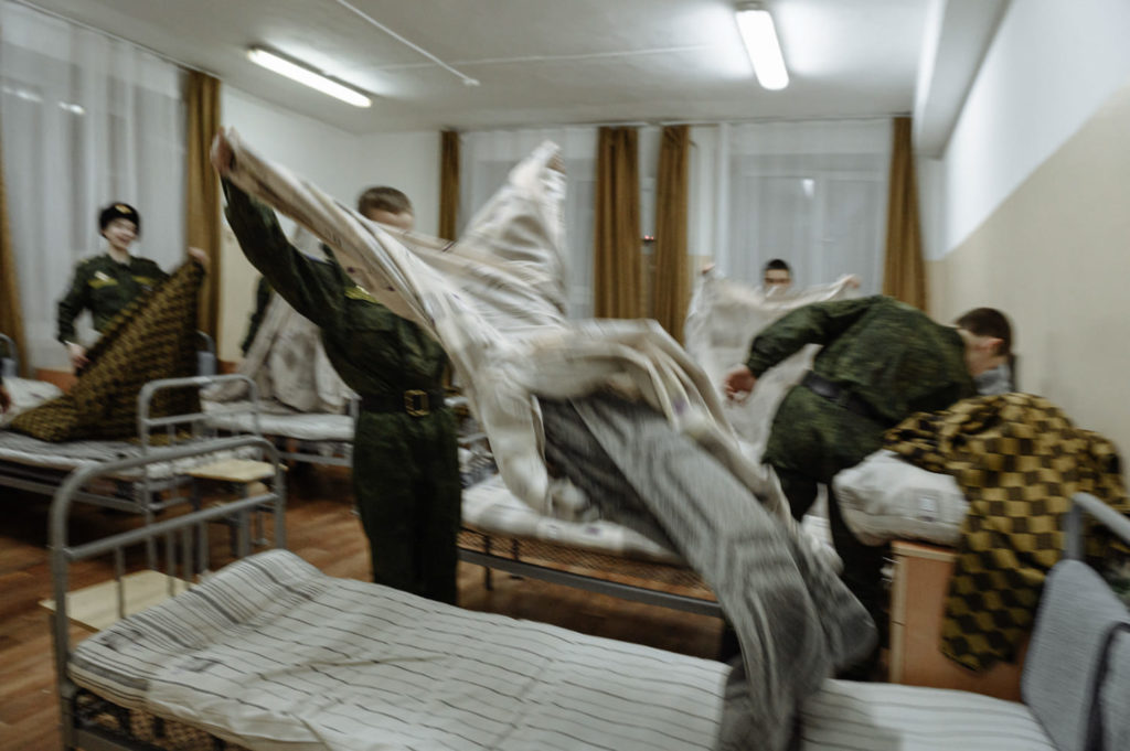 В корпусе есть уборщица, но большую часть бытовых обязанностей по уходу за собой лежит на самих кадетах. Раз в неделю они меняют постельное бельё на своих кроватях. Первокурсникам, говорит Анна Диденко, сначала этот процесс даётся сложно. «Они придумали очень забавный способ заправлять кровати, — улыбается Анна. — Берут одеяло и вместе с ним залезают в пододеяльник в полный рост. Потом выходят, а одеяло оставляют внутри».