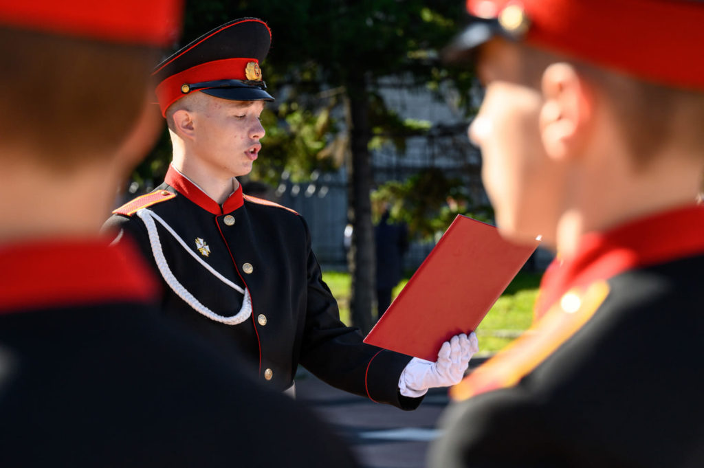 Каждый год первого октября первокурсники, мальчики 12-13 лет, дают клятву кадета. До этого месяц их учат правильно маршировать. Ровными рядами по три человека они маршируют по плацу, по приказу останавливаются, а потом снова начинают маршировать. На левом рукаве формы первокурсника есть нашивка в форме галочки. По количеству таких «галочек» можно определить, на каком курсе учится кадет: одна «галочка» значит один год обучения.