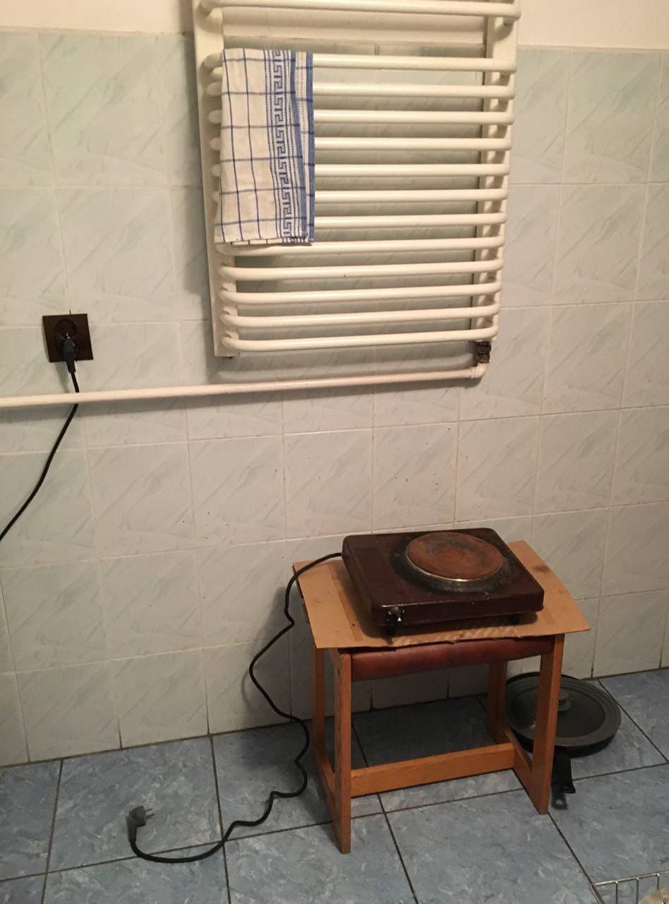 Живём скромно, на кашах, лапше быстрого приготовления и омлетах. Если кто-то здесь варит суп, угощаем друг друга. Недавно в дверь постучали: генеральная уборка! Я вышла мыть. Взяла на себя кухню. Она здесь крошечная, один человек встал — и всё, пока не сварил, никому не войти. Отскребла её до блеска.