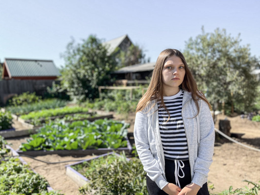 Ильи нет в Улан-Удэ почти пять месяцев. На Диане — все домашние дела. «Хорошо, что дочка сейчас много спит, — рассуждает она. — Я за это время успеваю в доме убраться, огород полить». Каминская — небольшого роста, в белой футболке и чёрных штанах. Она выглядит как старшеклассница.