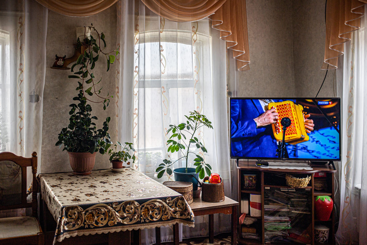Раньше икона была окном к Богу, а сейчас её место занял телевизор. Ему люди в деревне отдают много энергии, «молятся» на него.