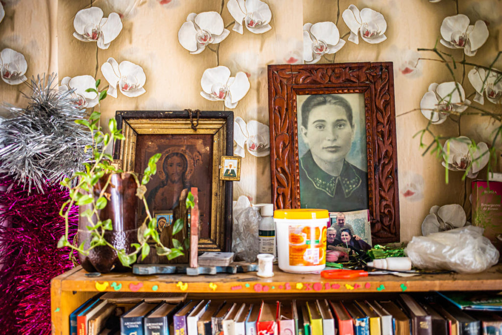Эта фотография с иконой на фотообоях, а также заглавная, с медведем, особенно привлекательные для меня из этой подборки. В них много деталей, сочетаются казалось бы несочетаемые вещи. Обе фотографии сняты в одном доме в деревне Кумарейка в Балаганском районе. Мы приезжали к одной старушке вместе с фельдшером скорой помощи на вызов.
