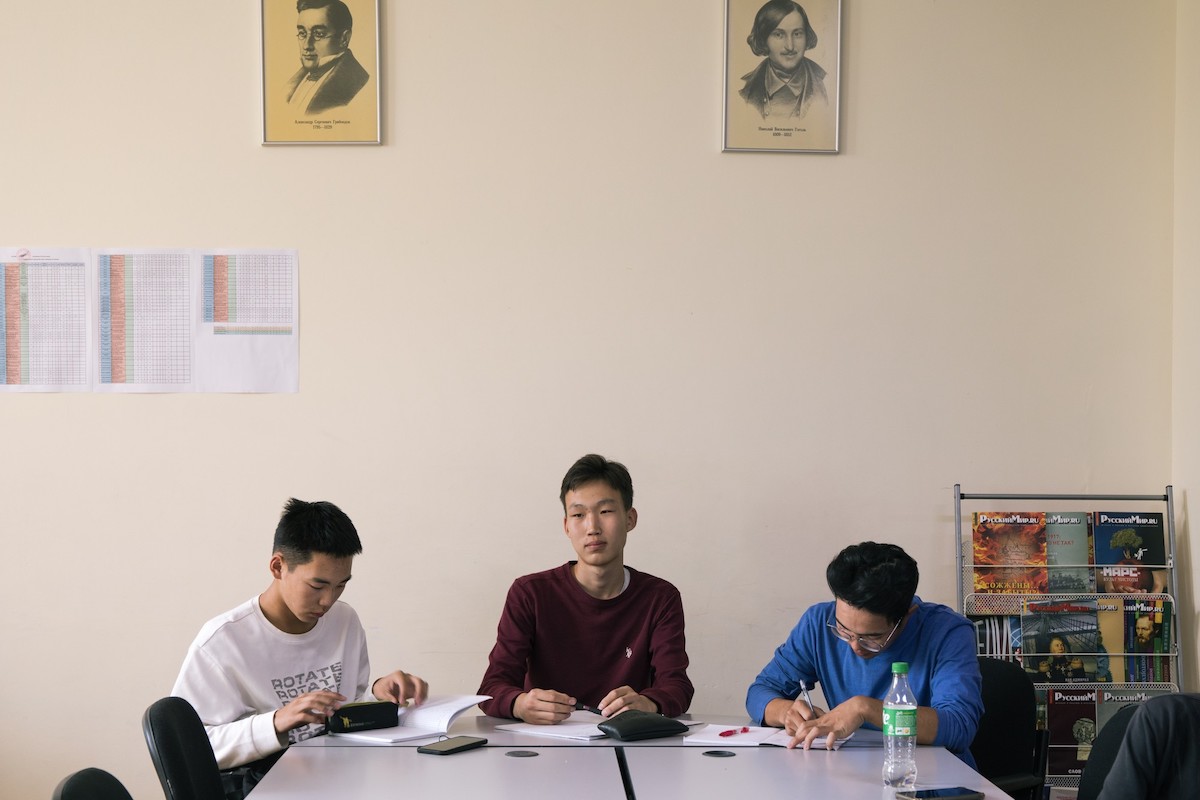 Россотрудничество — это госорганизация, которая должна заниматься поддержкой русского языка за границей. Главная её цель — «развитие международного гуманитарного сотрудничества за рубежом». В Улан-Баторе у организации есть Русский дом — массивное конструктивистское здание, в котором проходят концерты, спектакли, курсы русского языка. Сюда зовут всех желающих.