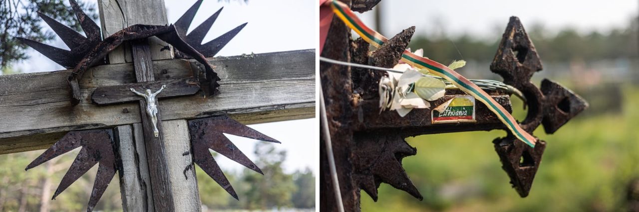 Внутри — фотографии ссыльных, их письма, книги. В прозрачном файле (здесь его называют мультифорой) — литовский флаг, чётки и металлическая фигурка распятого Иисуса, она помещается в ладонь. Иисуса музейщикам принёс местный житель, он нашёл фигурку на кладбище, где хоронили литовцев. В экспозиции также были части упавших деревянных крестов, их ставили на могилах ссыльных.