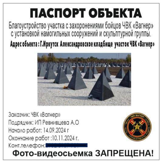 По словам координатора ЧВК «Вагнер» в Иркутской области с позывным «Танхой», он запретил фотографировать и снимать видео на кладбище.