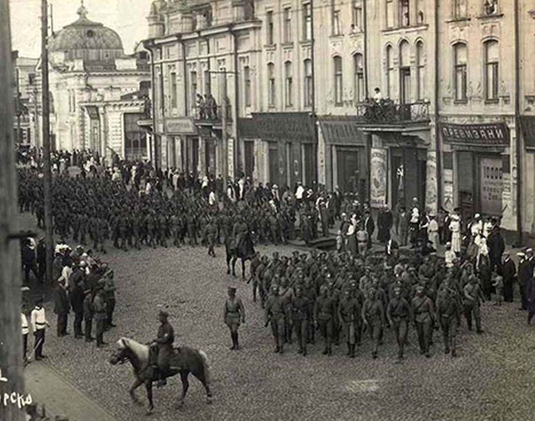 После артобстрела красногвардейцы пошли на штурм города.