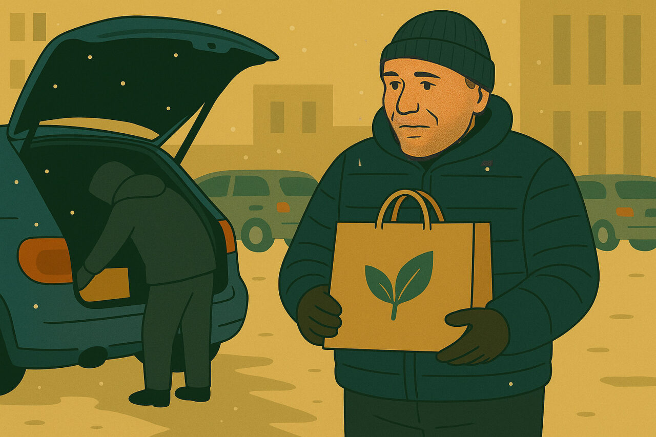 Момент передачи пакета из машины тайно снимали оперативники. Этот ролик длиной восемь секунд — одна из ключевых улик в деле. На видео высокий стройный мужчина в кожаной куртке и джинсах, это Чепрасов, принимает пакет, легко перебрасывает его из одной руки в другую. Вокруг припаркованы машины, на улице безлюдно. В один из последних дней весны 2021 года в Иркутске пробрасывает снег, дует ветер.