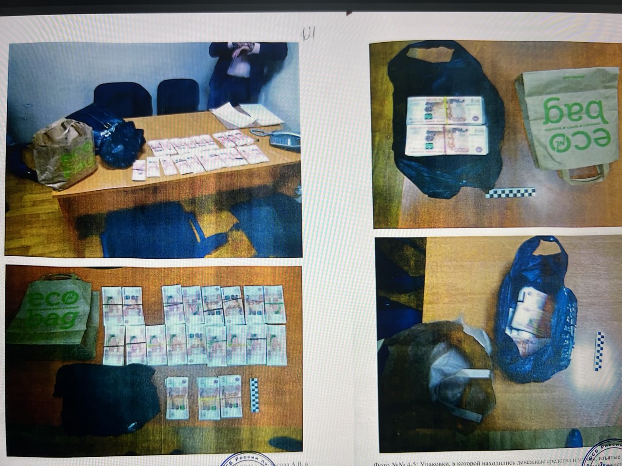 Пачки пятитысячных купюр лежат в черном пластиковом мешке на письменном столе. Рядом — бумажный пакет, на нем зеленым написано «ECO BAG». В этом бумажном пакете, по версии следствия, бывший лесник Климович 29 апреля 2021 года принес полковнику ФСИН Чепрасов 10 миллионов рублей. Это первая часть его доли в 30 миллионов рублей.
