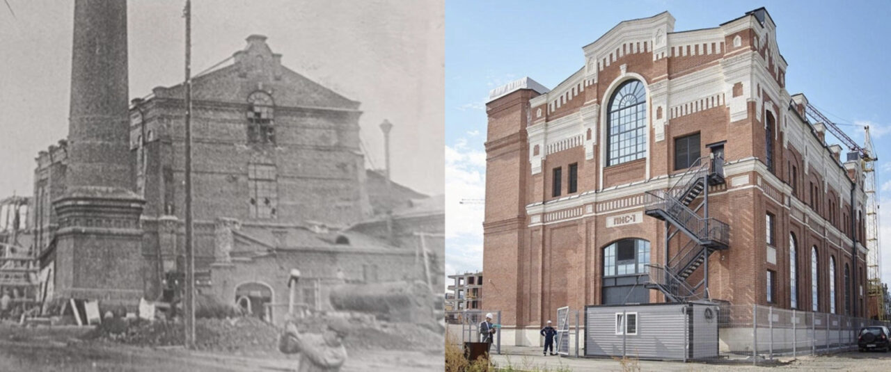 Второй объект — это насосная станция «Правобережная» из красного кирпича в неорусском стиле, характерном для иркутской застройки начала XX века. Это тоже новодел, который авторы определяют как «индустриальный реализм». Он лишь отсылает к облику первоначального здания ЦЭС (ТЭЦ) николаевских времен.