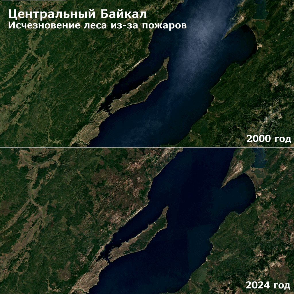 А после лесных пожаров за один сезон образуются огромные гари неправильной формы. Это отлично видно на примере лесов в охранной зоне Байкала.