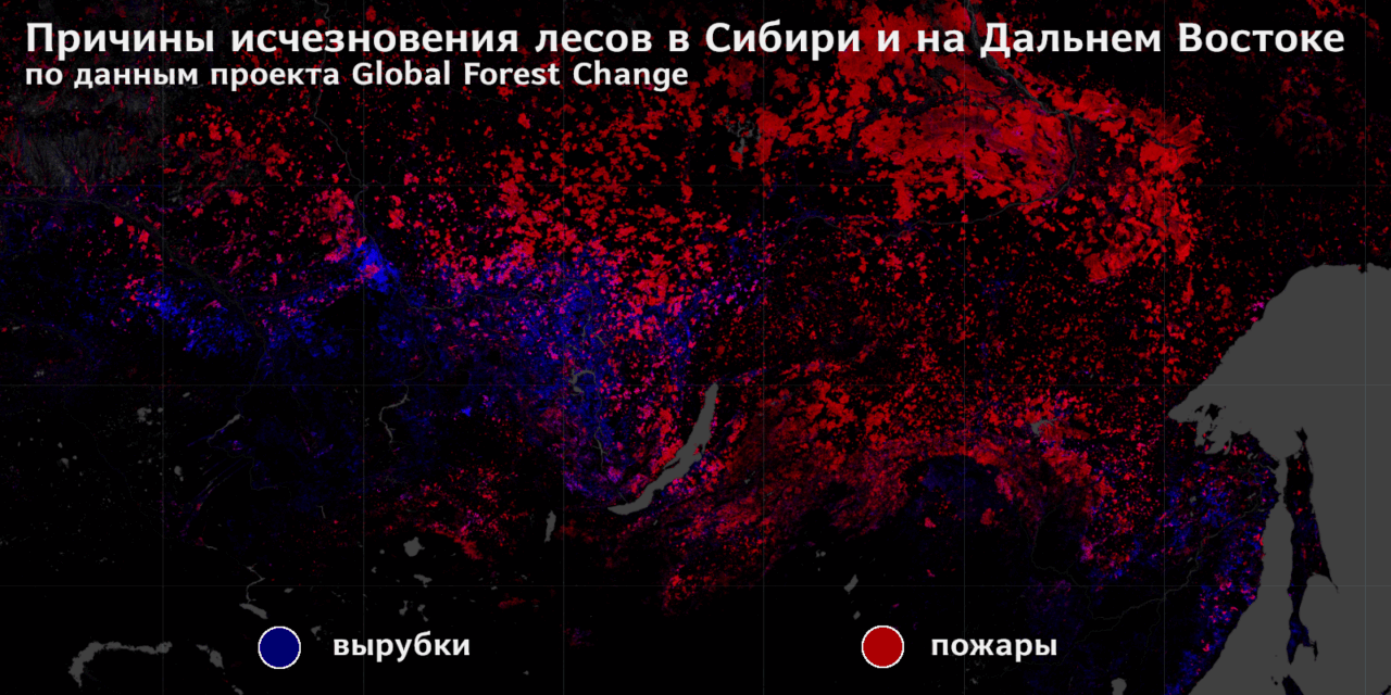 Анализ космоснимков показывает, что с 2000 года площадь лесов от Урала до Тихого океана сократилась на 1,2% или на 68 000 км². Это больше площади Литвы.