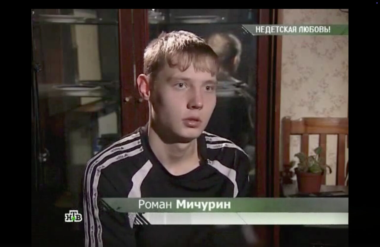 В «Очной ставке» показывают и самого Мичурина. Худой и долговязый Роман — в черном тренировочном костюме с лампасами, на лице следы от прыщей — мечтает «завести семью, жить нормально, счастливо, купить себе автобус, чтобы ребенок нормальный был, жена нормальная была».